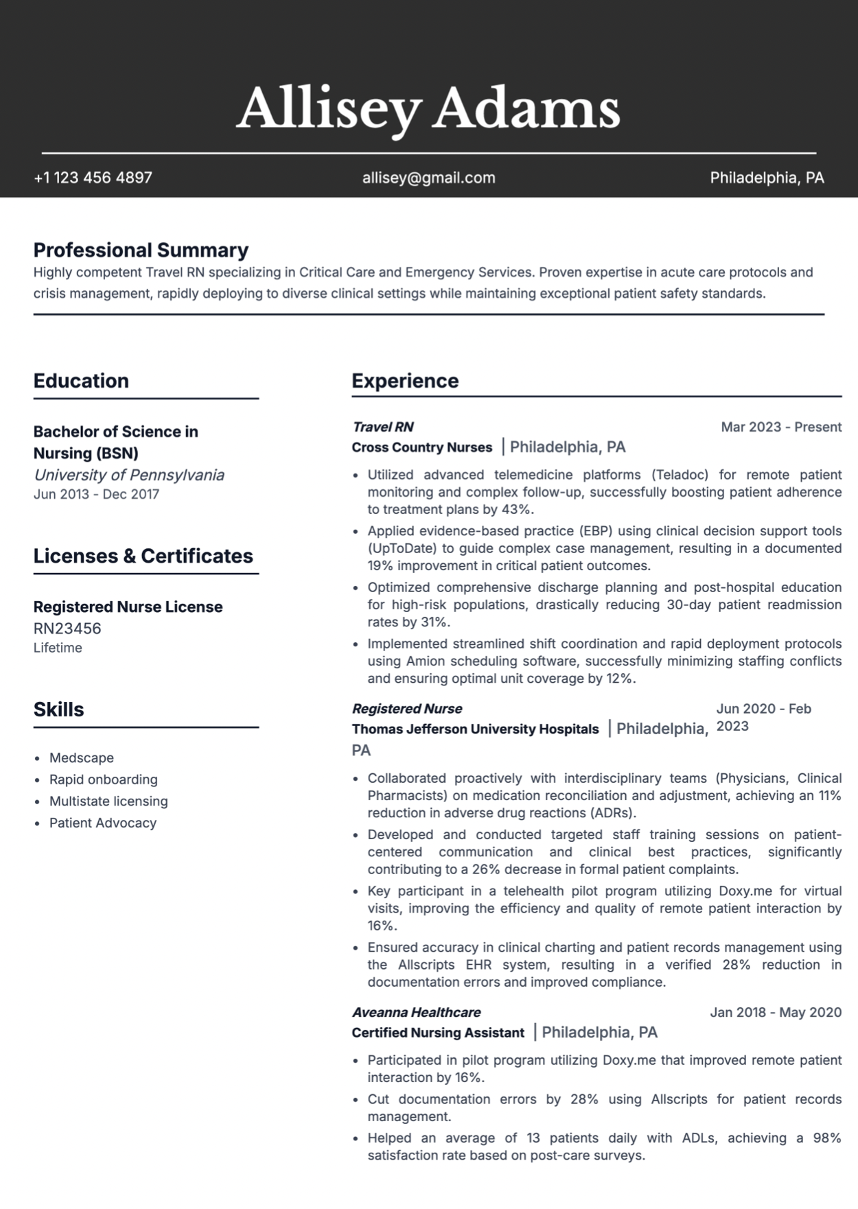 Best template for experienced travel nurses with 10+ years of experience.