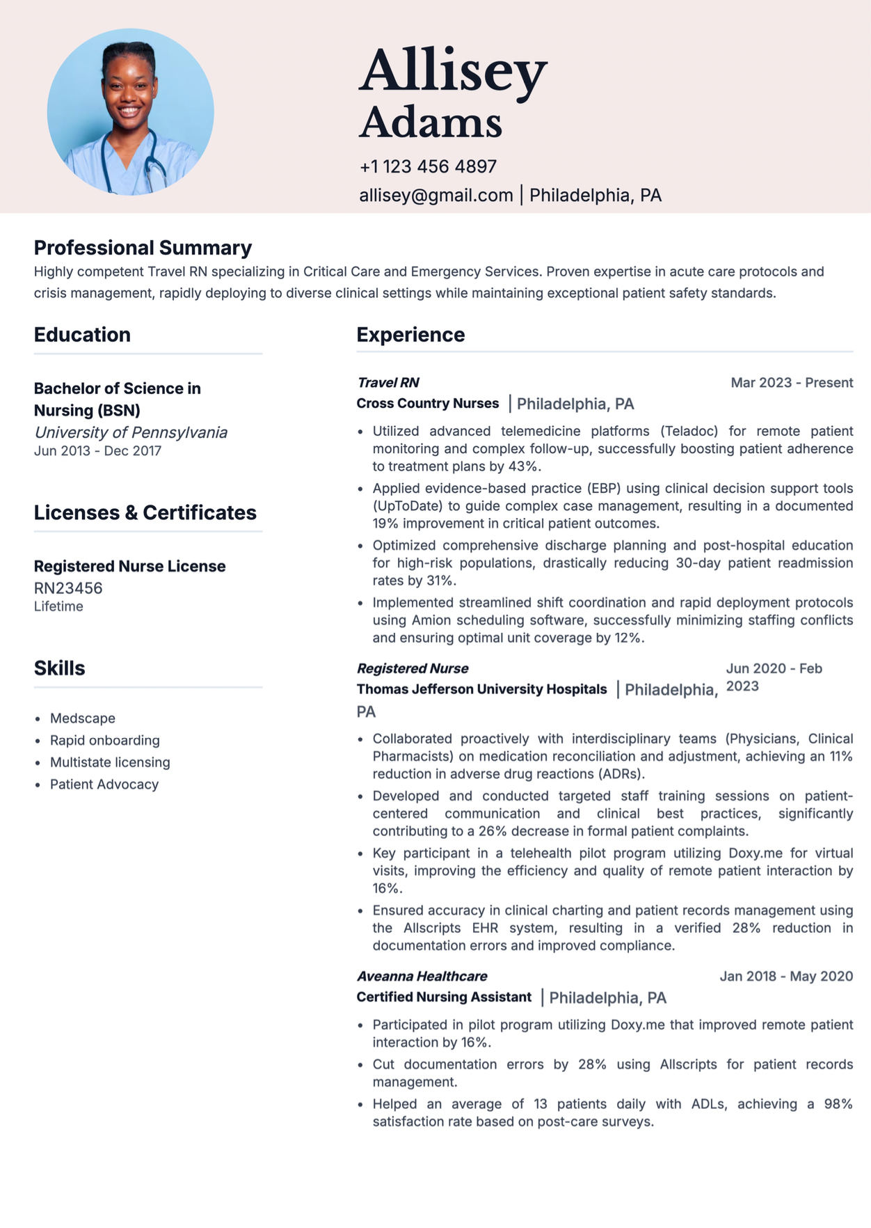 Experienced Travel Nurse Resume Template