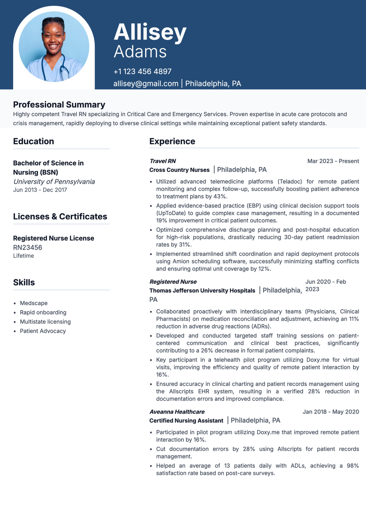 A strong RN resume isn't a list. It's a story. A clinical story told with data, clarity, and confidence. From top to bottom, your resume should flow like a story.